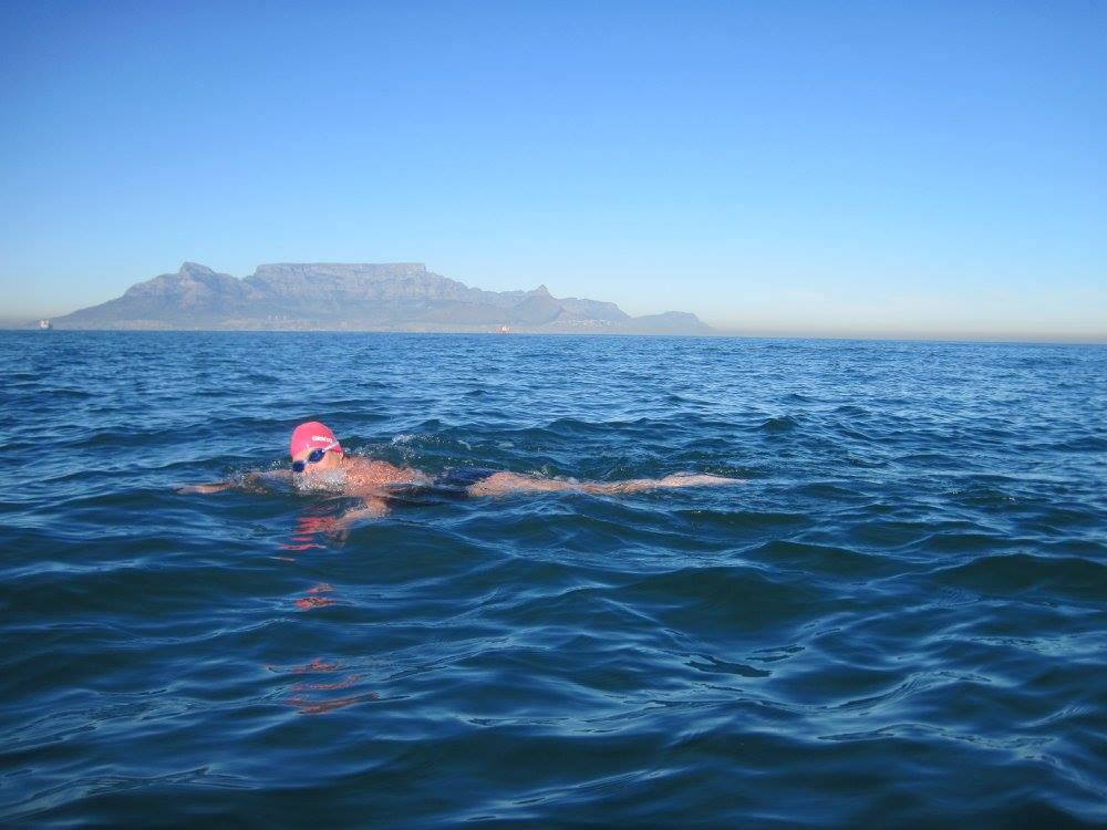 Met die Robbeneiland swem moet ek van die boot af spring in die koue water. Dan eers eiland toe swem en op die strand bo die hoogwater merk staan. Dan begin my swem. Ek weet nou ek kan die afstand swem, wat ek nie weet nie is of ek van die boot in die koue water sal kan spring!